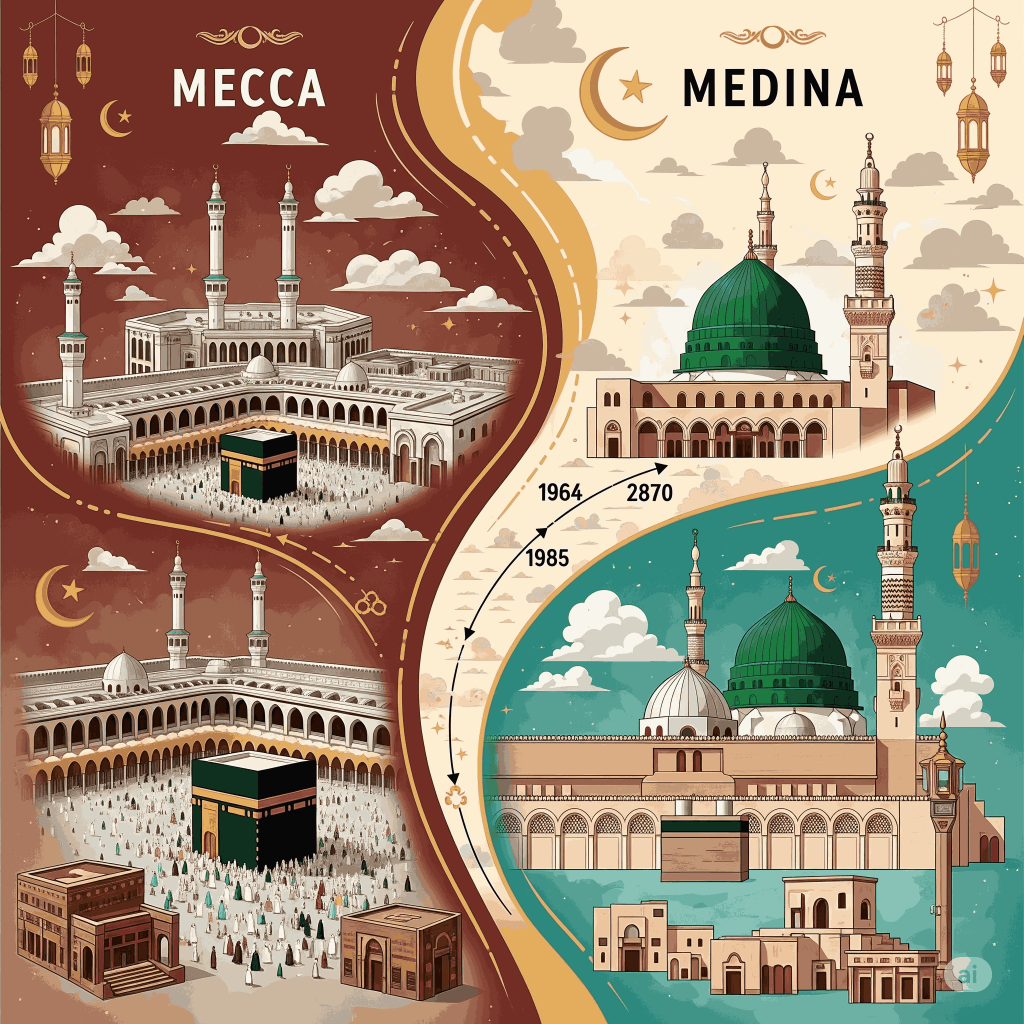 #Mekah #Madinah #PusatIslam #SejarahIslam #Kaabah #MasjidNabawi #Hijrah #NabiMuhammad #TanahSuci #PeradabanIslam #Haji #Umrah